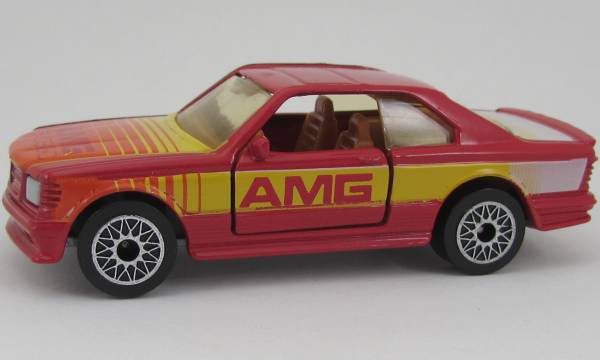 red, open doors, no roof lights, with license plate cast, smooth rear side window corners, AMG with yellow / orange / white stripe tampo |