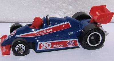 dark blue, silver rollbar and exhausts, red driver, 20 BOSCH STP, (R) on hood tampo, red GY airfoil tampo |