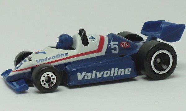 dark blue and white, black rollbar and exhausts, dark blue driver, VALVOLINE 5 tampo, dark blue VALVOL. airfoil tampo |