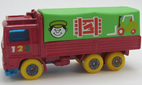 red, lime canopy, cartoon face and forklift, 123 on doors tampo |