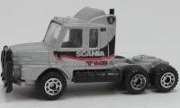 silver-gray, black chassis, black grille, SCANIA T142, black and red stripes