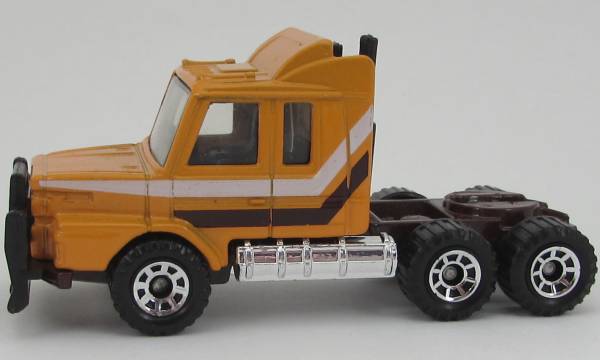 orange, brown chassis, black grille, white and brown stripes tampo |