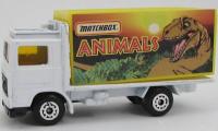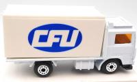 fluorescent orange, yellow container, MATCHBOX on cab / FAST LANE on container (sided)