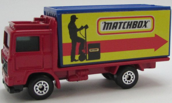 red, blue container, MATCHBOX with arrow and man (sided) deco |