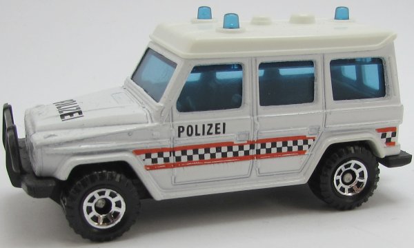 white, white roof, blue roof lights, POLIZEI with checkers tampo |