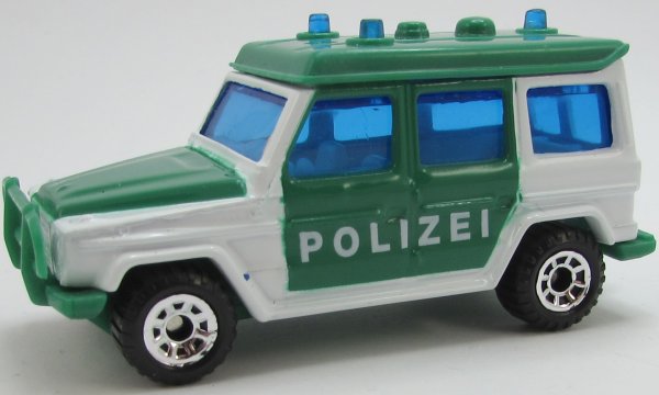 white, green roof, blue roof lights, POLIZEI, green doors and hood tampo |