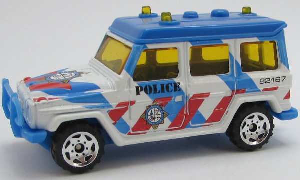 white, light blue roof, amber roof lights, POLICE 82167, blue and red stripes tampo |