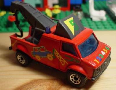 red, gray boom and roof mount, black tow hook, cartoon towed car tampo |