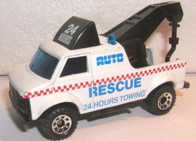 white, black 24 HOURS boom and roof mount, black tow hook, light blue AUTO RESCUE tampo |
