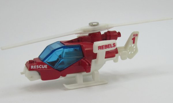 | red, white blades, white skis, white tail, REBELS / RESCUE / AIR 1 |