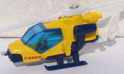yellow, white blades, blue skis, white tail, CANON tampo |