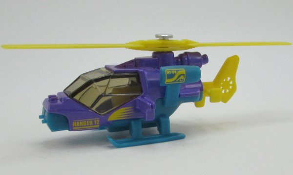 purple, yellow blades, turquoise skis, yellow tail, HANGER 12 tampo |