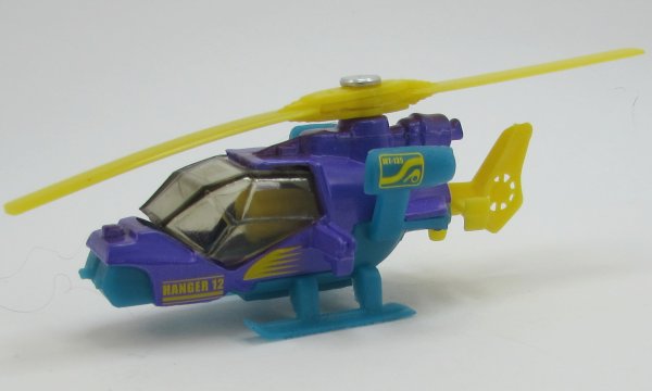 purple, yellow blades, turquoise skis, yellow tail, HANGER 12, MB2000 on windshield tampo |