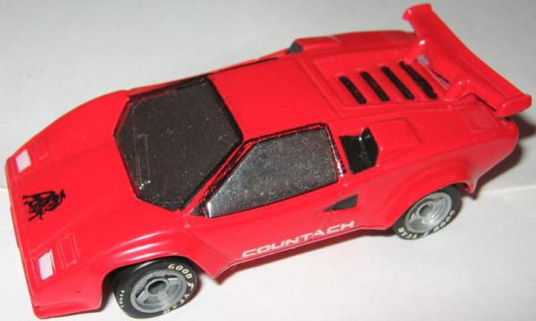 red, no license plate, white COUNTACH, detail trim, license BRAVO tampo |