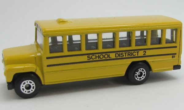 yellow, silver grille, small square rear door window, SCHOOL DISTRICT 2 tampo |
