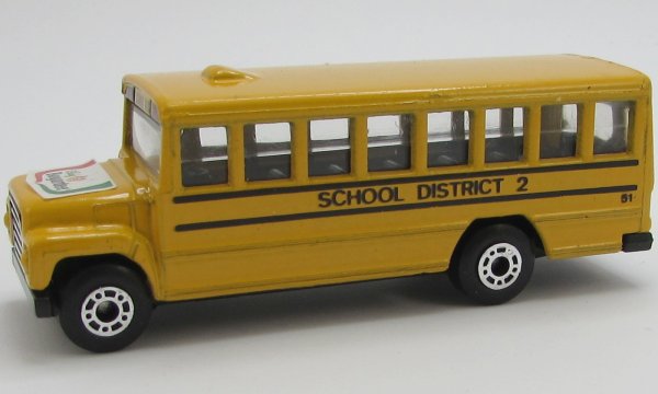 orange-yellow, silver grille, filled lower rear door window, SCHOOL DISTRICT 2 / CHEF BOYARDEE label tampo |