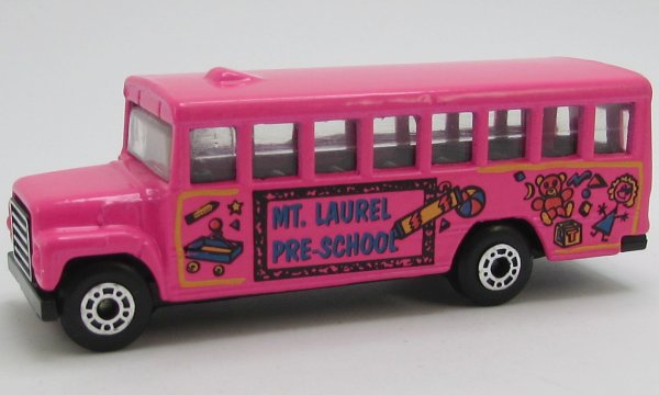 dark pink, silver grille, filled lower rear door window, MT. LAUREL PRE-SCHOOL tampo |
