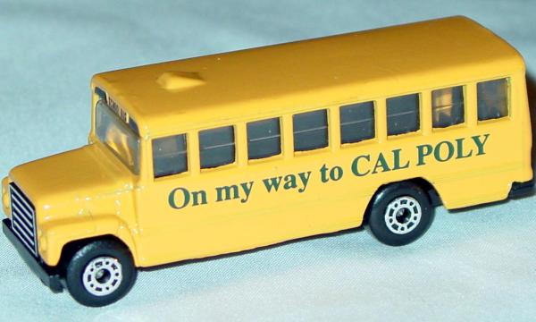 orange-yellow, silver grille, filled lower rear door window, ON MY WAY TO CAL POLY (blue, left side only) tampo |