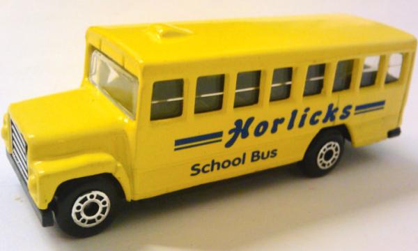 lemon, silver grille, filled lower rear door window, HORLICKS SCHOOL BUS (black, sides) tampo |