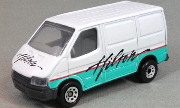 white and teal, no TRANSIT at rear, HILTON (black letters) tampo |