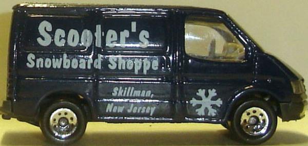 dark blue, no TRANSIT at rear, SCOOTER'S SNOWBOARD SHOPPE tampo |