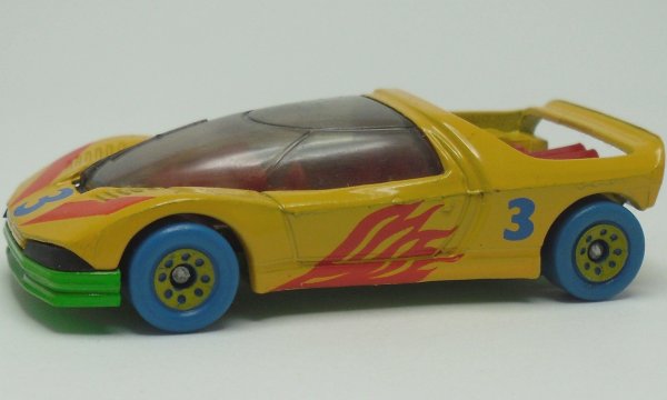 yellow, red engine, orange stripes, flames, blue 3 tampo |