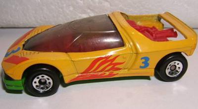 yellow, red engine, orange stripes, flames, blue 3 tampo |
