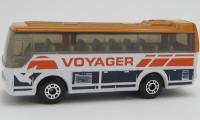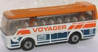 white, red roof, blue and red WORLD CUP TOUR BUS