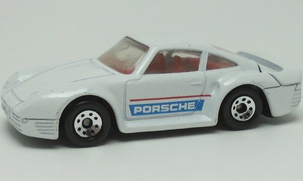 white, separate rear spoiler, with license plate cast, red and blue stripes with PORSCHE on doors tampo |
