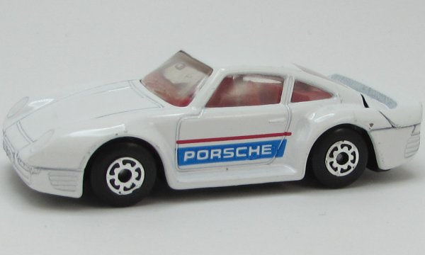 white, separate rear spoiler, with license plate cast, red and light blue stripes with PORSCHE on doors tampo |