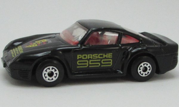black, cast rear spoiler, no license plate cast, PORSCHE 959 with logo tampo |