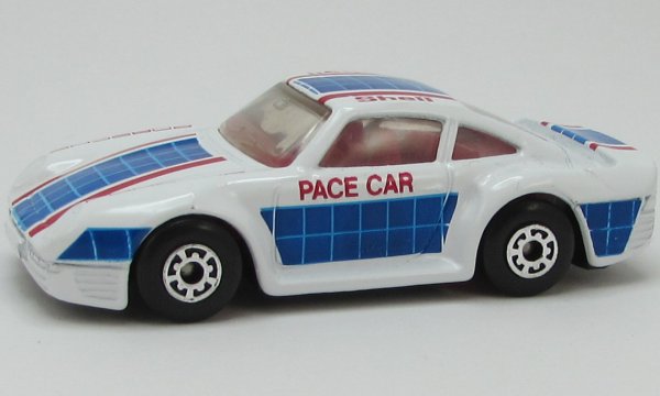 white, cast rear spoiler, no license plate cast, PACE CAR, SHELL, red and blue stripes tampo |