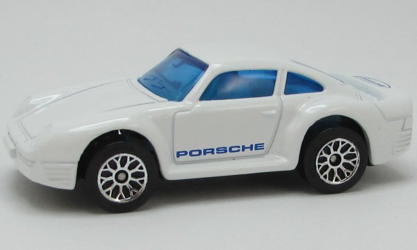 white, cast rear spoiler, no license plate cast, blue PORSCHE, red taillights tampo |