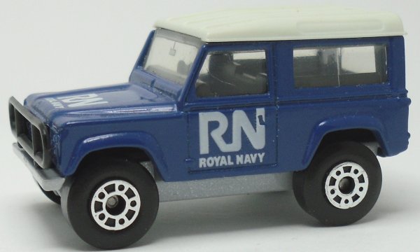 dark blue, white roof, black grille, RN ROYAL NAVY tampo |