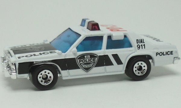 white, red and blue roof light, chrome grille, orange and black POLICE PD-21 tampo |