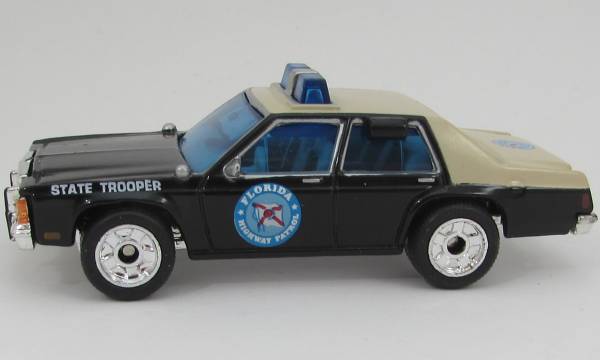| tan and black, blue roof light, chrome grille, FLORIDA ST. TROOPER, detail trim, license CHASE U |