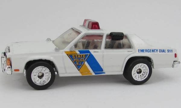 white, red roof light, chrome grille, STATE POLICE N.J., detail trim, license M-4933 tampo |