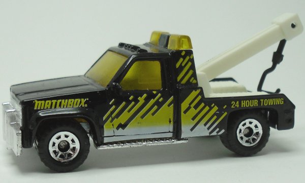 black, chrome plastic grille, light cloudy amber roof light, white rear area, white boom, black tow hook, MB 24 HOUR TOWING with lemon and white design tampo |