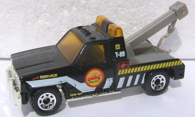black, chrome plastic grille, amber roof light, silver-gray rear area, silver-gray boom, silver-gray tow hook, SERVICE GMC with yellow and white design, MB logo at rear tampo |