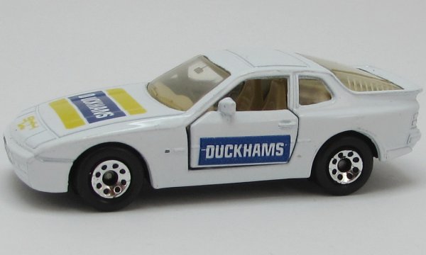 white, open doors, with license plate, dark blue DUCKHAMS tampo |