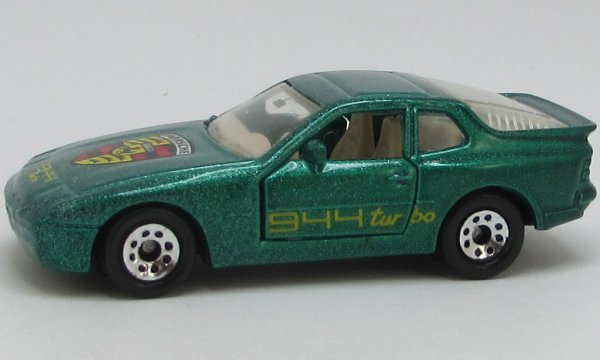 dull metallic green, open doors, with license plate, yellow 944 TURBO / large Porsche logo tampo |