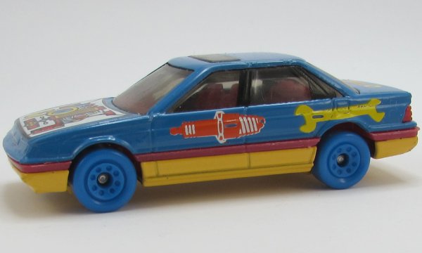 blue, red side stripe, exposed engine design and tools, black window pillars tampo |