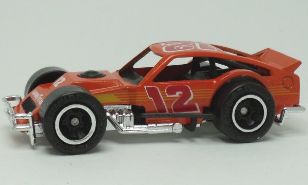 orange, black side bars, black grille, no driver name, 12 (slanted forward on sides), yellow stripes tampo |