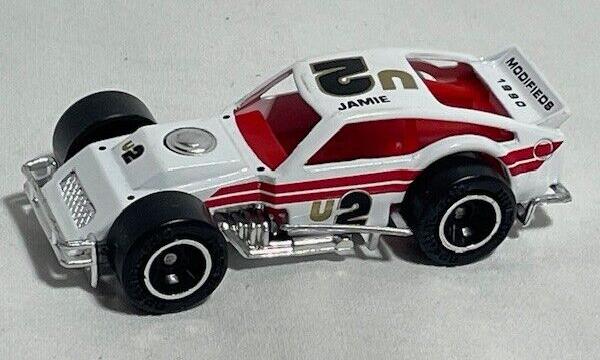 white, chrome side bars, chrome grille, Jamie (Tomaino) driver name, U2, red stripes tampo |