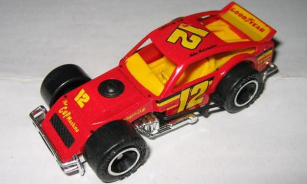 red, black side bars, black grille, Mike McLaughlin driver name, 12, black and yellow stripes tampo |