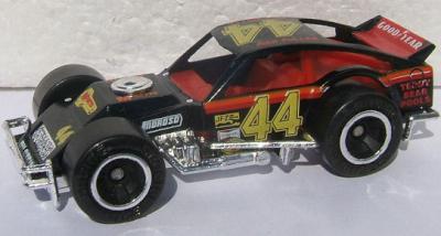 black, chrome side bars, chrome grille, Rick Fuller driver name, 44, red and orange stripes tampo |