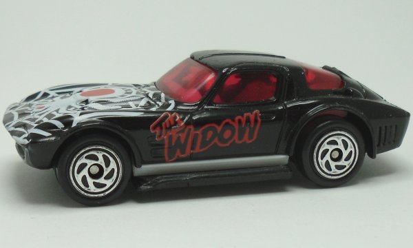 black, no rear license plate cast, red outlined THE WIDOW with spider and web tampo |