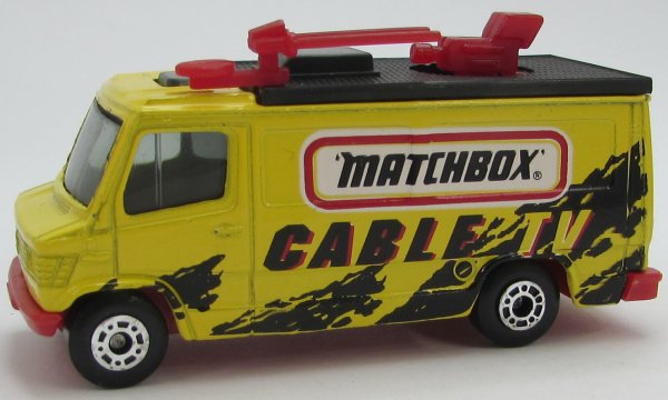 dark yellow, black roof, red roof units, Mercedes logo grille, MB CABLE TV tampo |