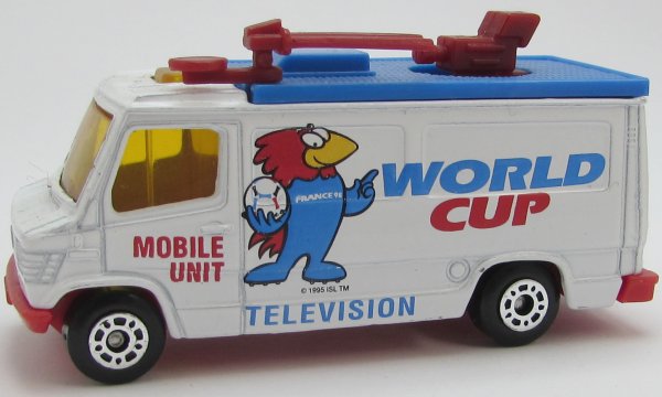 white, blue roof, dark red roof units, dot grille, WORLD CUP TELEVISION tampo |