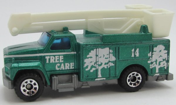 metallic green, white turret, white boom, white bucket, white TREE CARE 14 with tree design deco |